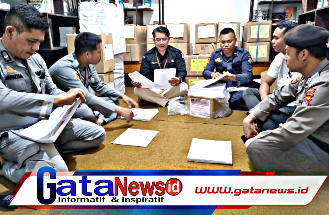Gatanews.id, Mataram | Subsatgas PAM Kantor KPU Operasi Mantap Brata (OMB) Rinjani 2023-2024 Polda NTB melakukan pengamanan kegiatan penyortiran Surat Suara Pemungutan Suara Ulang (PSU) untuk DPR RI, DPD dan DPRD Provinsi NTB, Rabu (10/01/2024) di Gudang penyimpanan Logistik Kantor KPU Provinsi NTB.