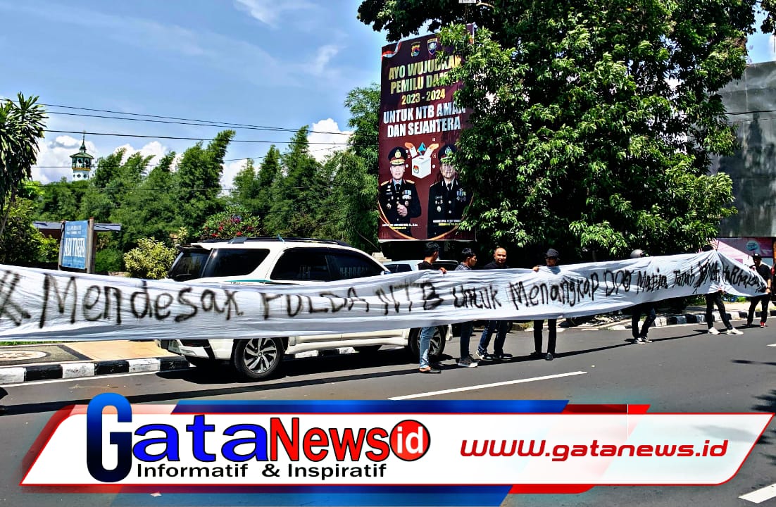 Awalnya, massa ingin membentangkan spanduk sepanjang 500 meter bertuliskan desakan agar Polda NTB menangkap DPO Muhammad Harharah. Namun sebelum dibentangkan, aparat kembali merampas kain sebagai media menyampaikan aspirasi tersebut.