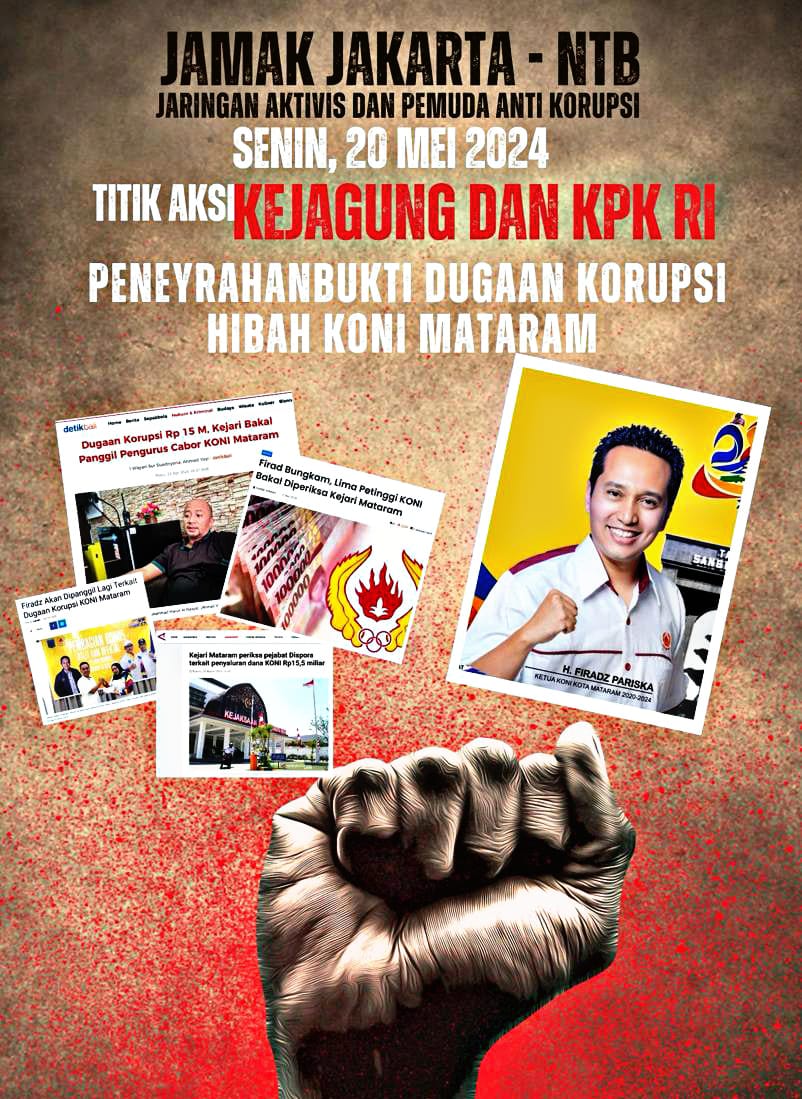 1. Mendesak Kejaksaan Agung Ri dan KPK panggil dan periksa Ketua Koni Kota Mataram Firadz Fariska atas dugaan penyalahgunaan dana hibah KONI Kota Mataram tahun 2021-2023.