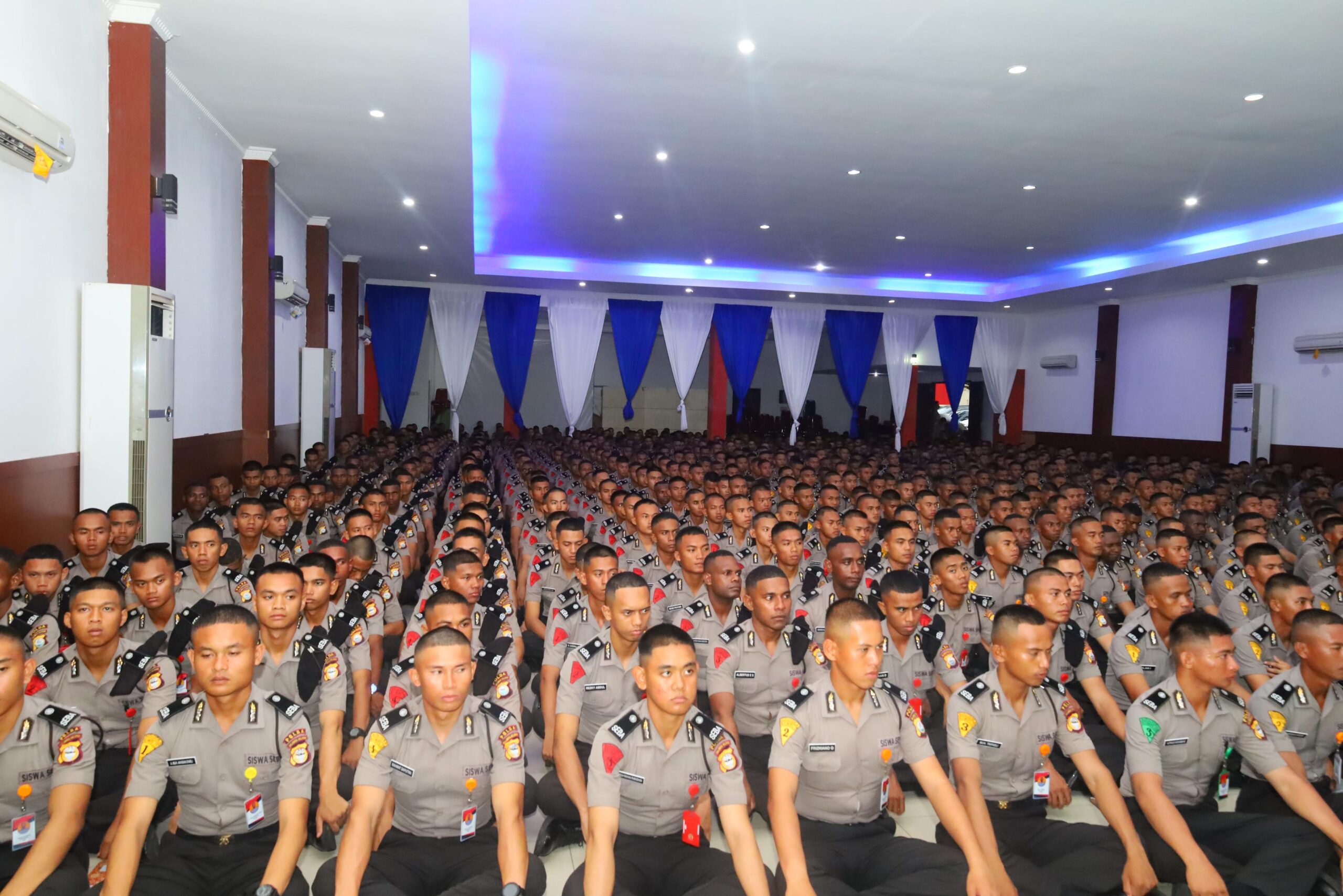 Kapolda Sulawesi Selatan, Irjen Pol. Yudhiawan, S.H., S.I.K., M.H., M.Si., memberikan pembekalan dan arahan kepada 854 siswa Diktuk Bintara Polri T.A 2024 di Aula Soebarka SPN Polda Sulsel pada Selasa (17/12/24). Acara ini bertujuan untuk membekali calon anggota Polri yang akan segera dilantik dengan pangkat Brigadir Dua, agar siap mengabdi kepada masyarakat, bangsa, dan negara.