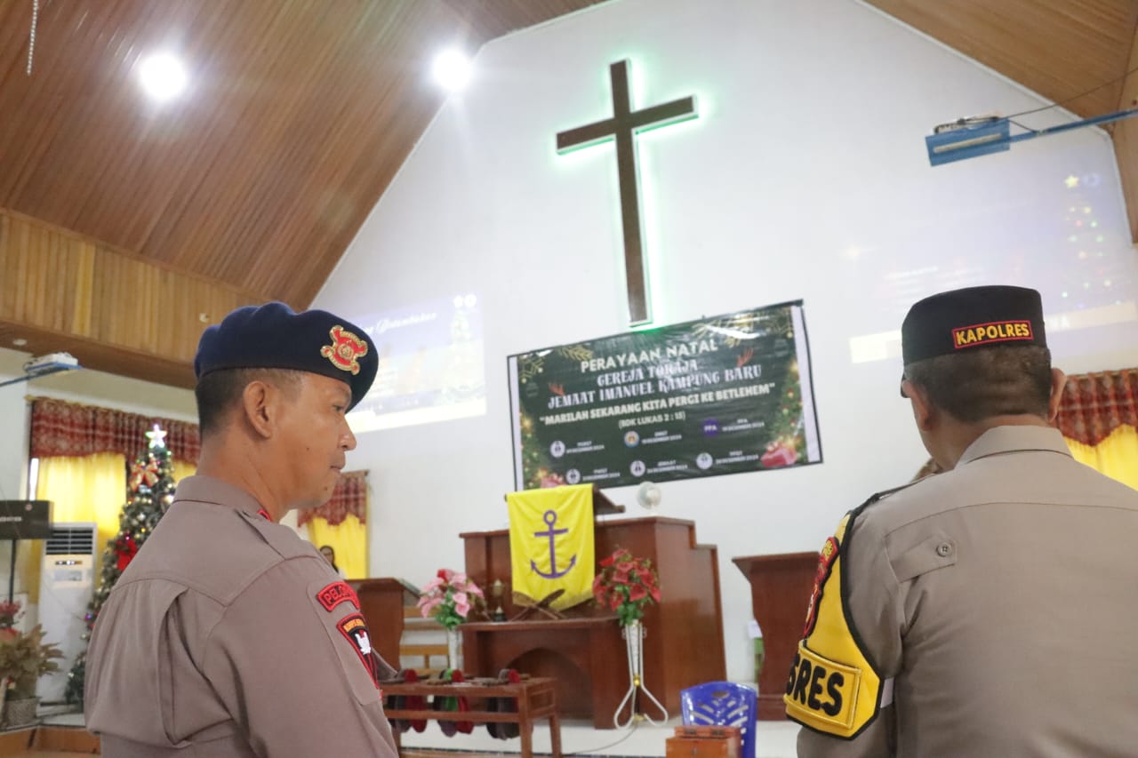 “Hari ini puncak perayaan natal dan untuk memastikan keamanan di gereja-gereja kami dari polres membagi dua tim untuk memantau pengamanan Natal di sejumlah titik yang sudah ditentukan. Untuk itu, bagi rekan rekan yang merayakan silahkan beribadah dengan tenang biar kami yang jaga bapak ibu.” Ungkap Kapolres disela-sela peninjaunnya.