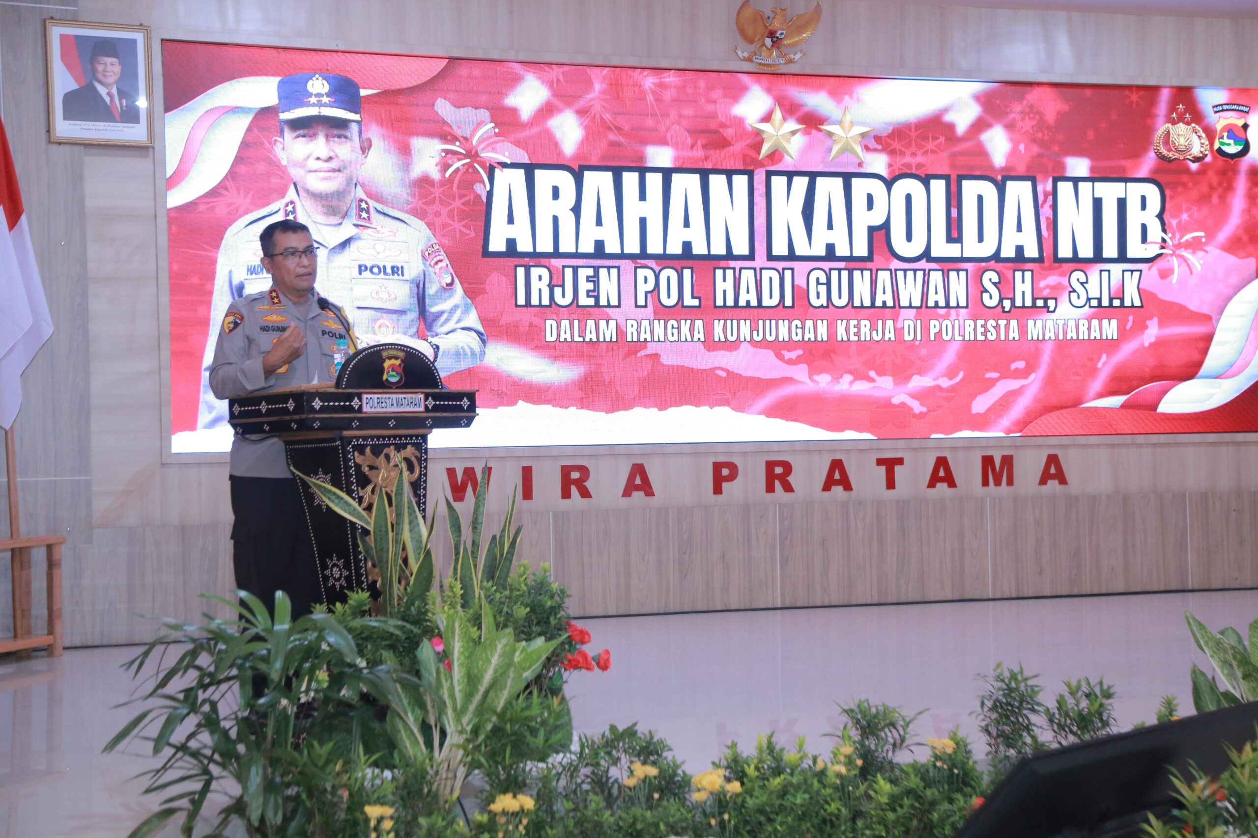 Gatanews.id | Mataram – Pasca mengunjungi Polres Lombok Barat, Kapolda Nusa Tenggara Barat, Irjen Pol. Hadi Gunawan, S.H., S.I.K., Selasa (24/12/2024), bertolak dan menyampaikan arahan kepada Pejabat Utama (PJU) dan Kapolsek jajaran Polresta Mataram.