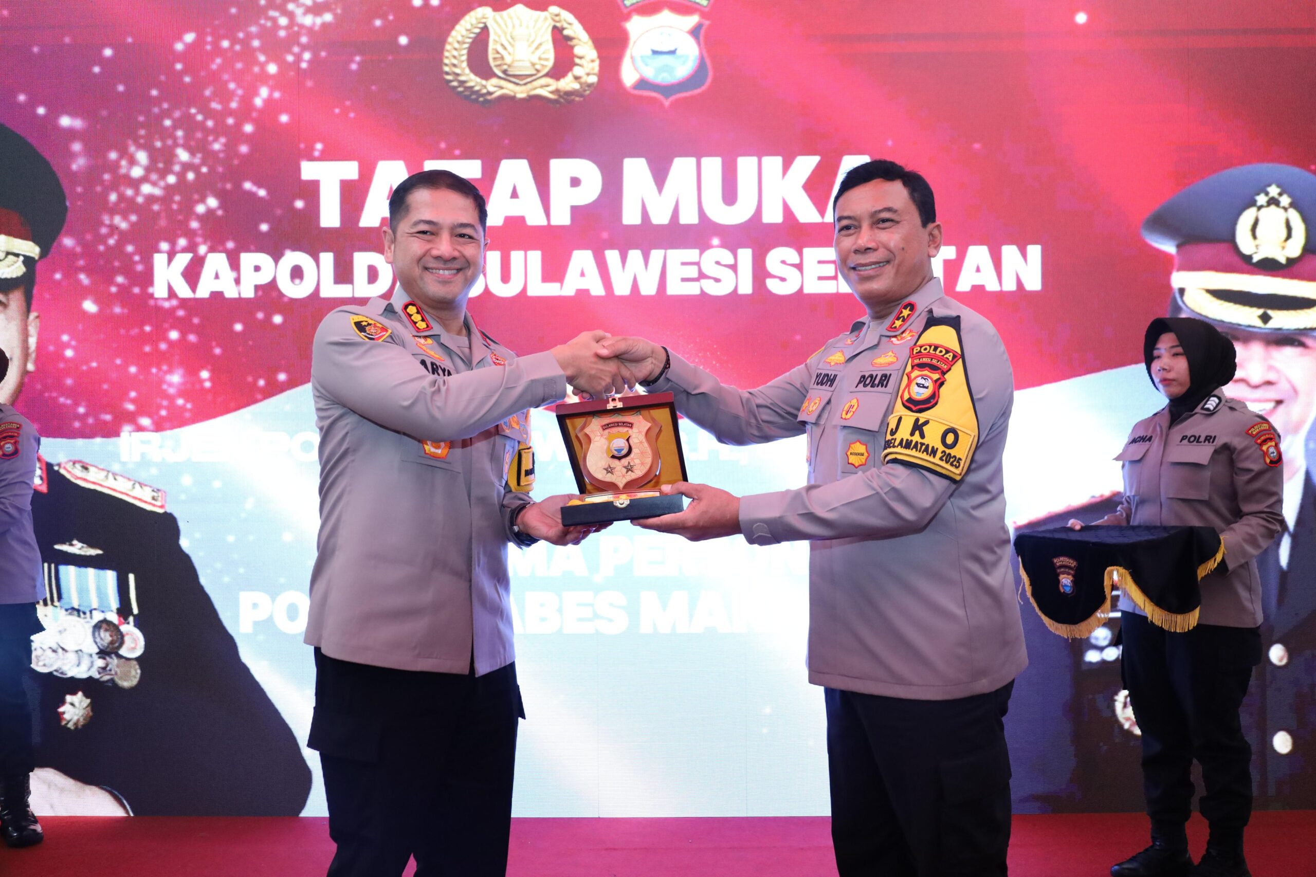 Kapolda Sulawesi Selatan, Irjen Pol. Yudhiawan S.H., S.I.K., M.H., M.Si., didampingi Ketua Bhayangkari Daerah Sulsel Ny. Yunita Yudhiawan melaksanakan kunjungan di Mako Polrestabes Makassar pada Selasa (11/02/25). Kedatangan Kapolda Sulsel disambut dengan upacara adat berupa Pengalungan Bunga oleh Kapolrestabes Makassar Kombes Pol. Arya Perdana, S.H., S.I.K., M.Si., serta pemberian buket bunga kepada Ny. Yunita Yudhiawan oleh Ketua Bhayangkari Cabang Tabes Makassar Ny. Emma Arya Perdana. Acara dilanjutkan dengan Jajar Kehormatan yang dilakukan oleh personel Polrestabes Makassar.