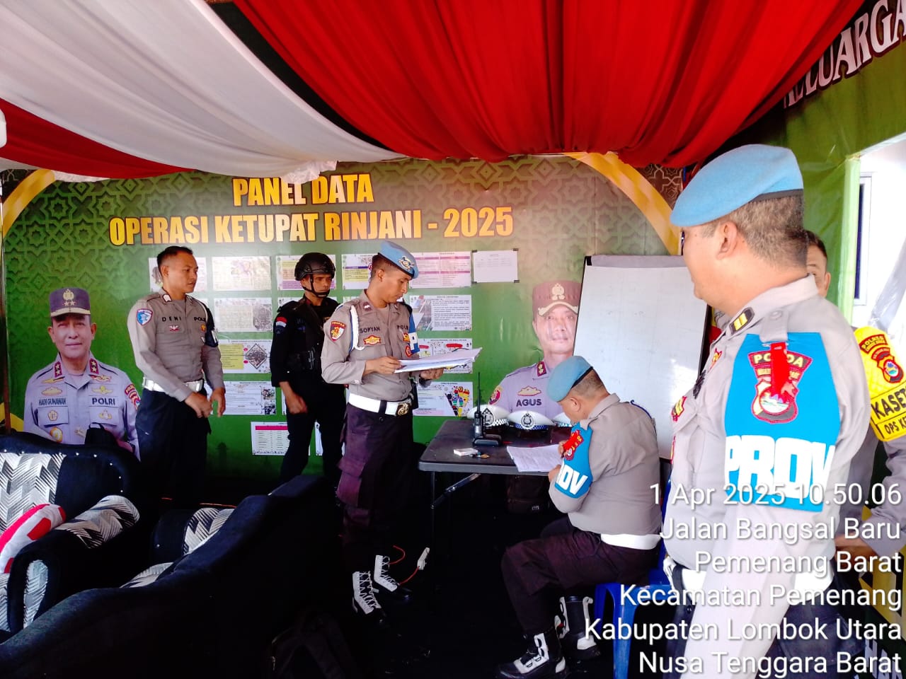 Gatanews.id | Mataram, NTB – Demi memastikan Operasi Ketupat Rinjani 2025 berjalan sesuai Standar Operasional Prosedur (SOP), Subsatgas Propam Polda NTB melaksanakan pengecekan personel di Pos Pelayanan Bangsal, Pemenang, Kabupaten Lombok Utara, Selasa (01/04/2025).