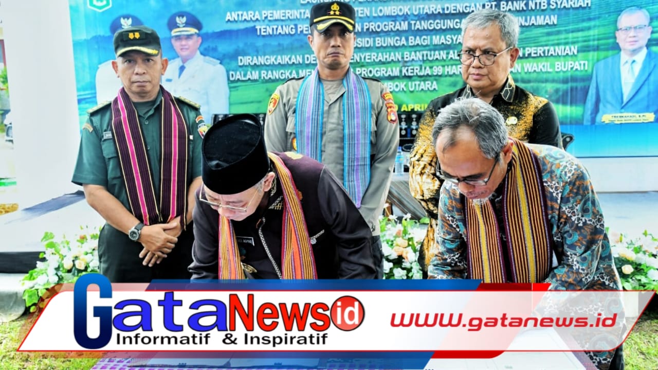 Gatanews.id, Lombok Utara | Bank NTB Syariah dan Pemda Kabupaten Lombok Utara melakukan penandatanganan Memorandum of Understanding (MoU) dan Perjanjian Kerja Sama (PKS) tentang Pelaksanaan Program Tanggungan Bagi Hasil Pinjaman Masyarakat, Kamis (10/04/2025).