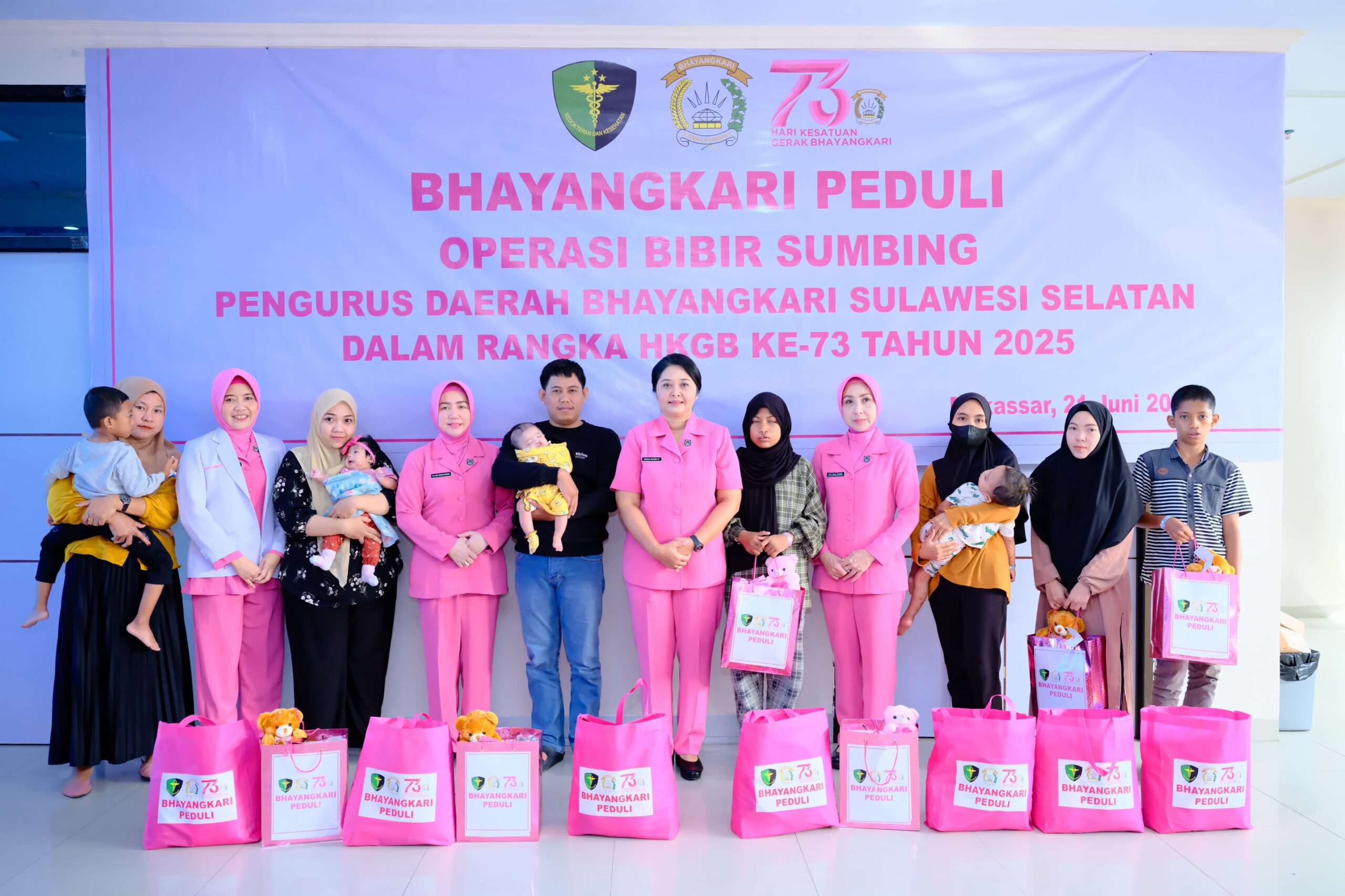 Dalam rangka memperingati Hari Kesatuan Gerak Bhayangkari (HKGB) ke-73 tahun 2025, Bhayangkari Daerah Sulawesi Selatan menggelar kegiatan bakti kesehatan berupa operasi bibir sumbing. Kegiatan ini dilaksanakan selama dua hari, mulai tanggal 20 hingga 21 Juni 2025, bertempat di Rumah Sakit Bhayangkara Tingkat II Makassar.