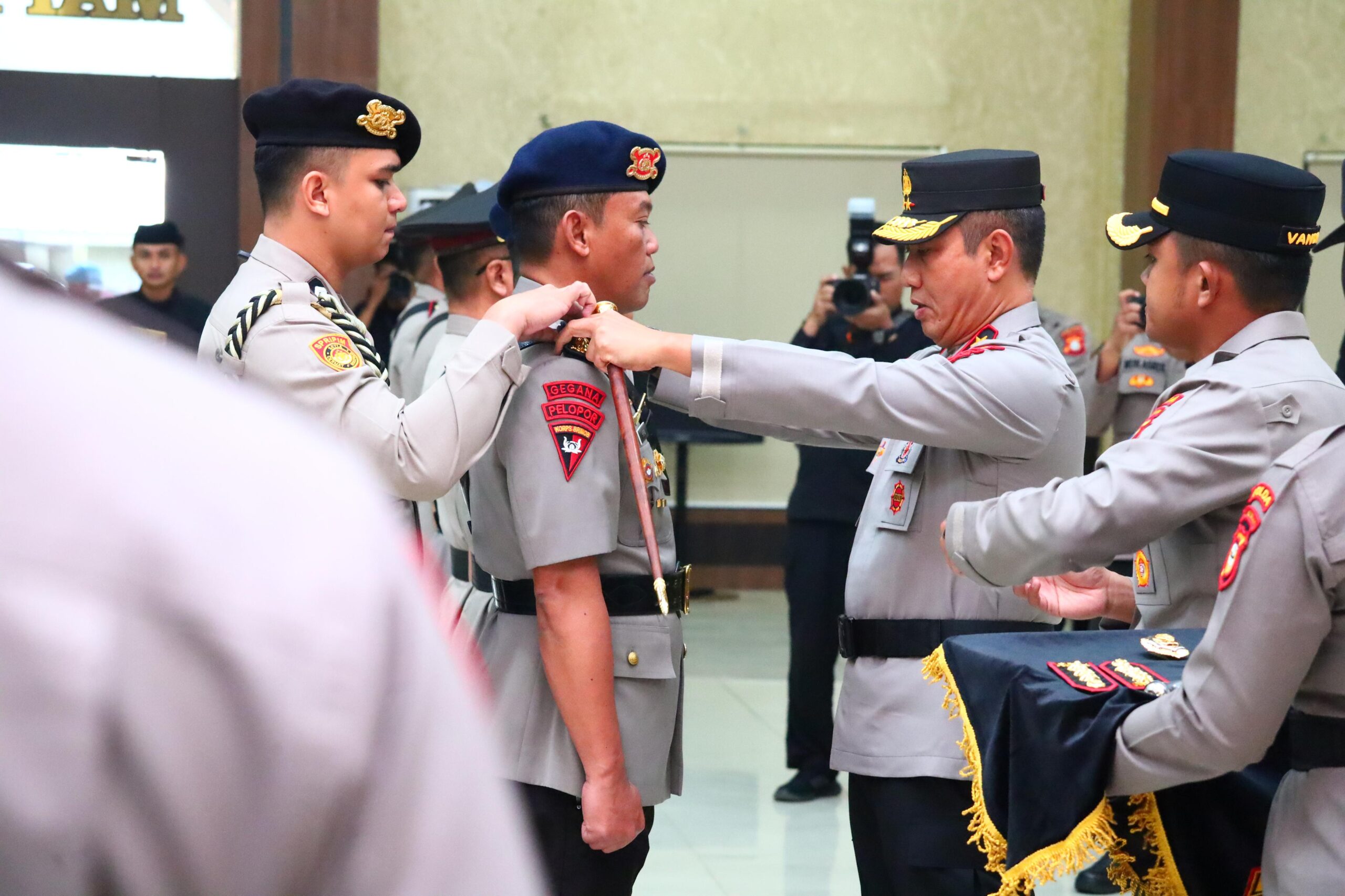 Kapolda Sulawesi Selatan, Irjen Pol. Drs. Rusdi Hartono, M.Si., didampingi Ketua Bhayangkari Daerah Sulsel, Ny. Irena Rusdi Hartono, memimpin langsung Upacara Serah Terima Jabatan (Sertijab) dan Pelantikan Pejabat Utama serta Kapolres Jajaran Polda Sulsel di Aula Mappaodang Mapolda Sulsel, Selasa (08/07/2025).