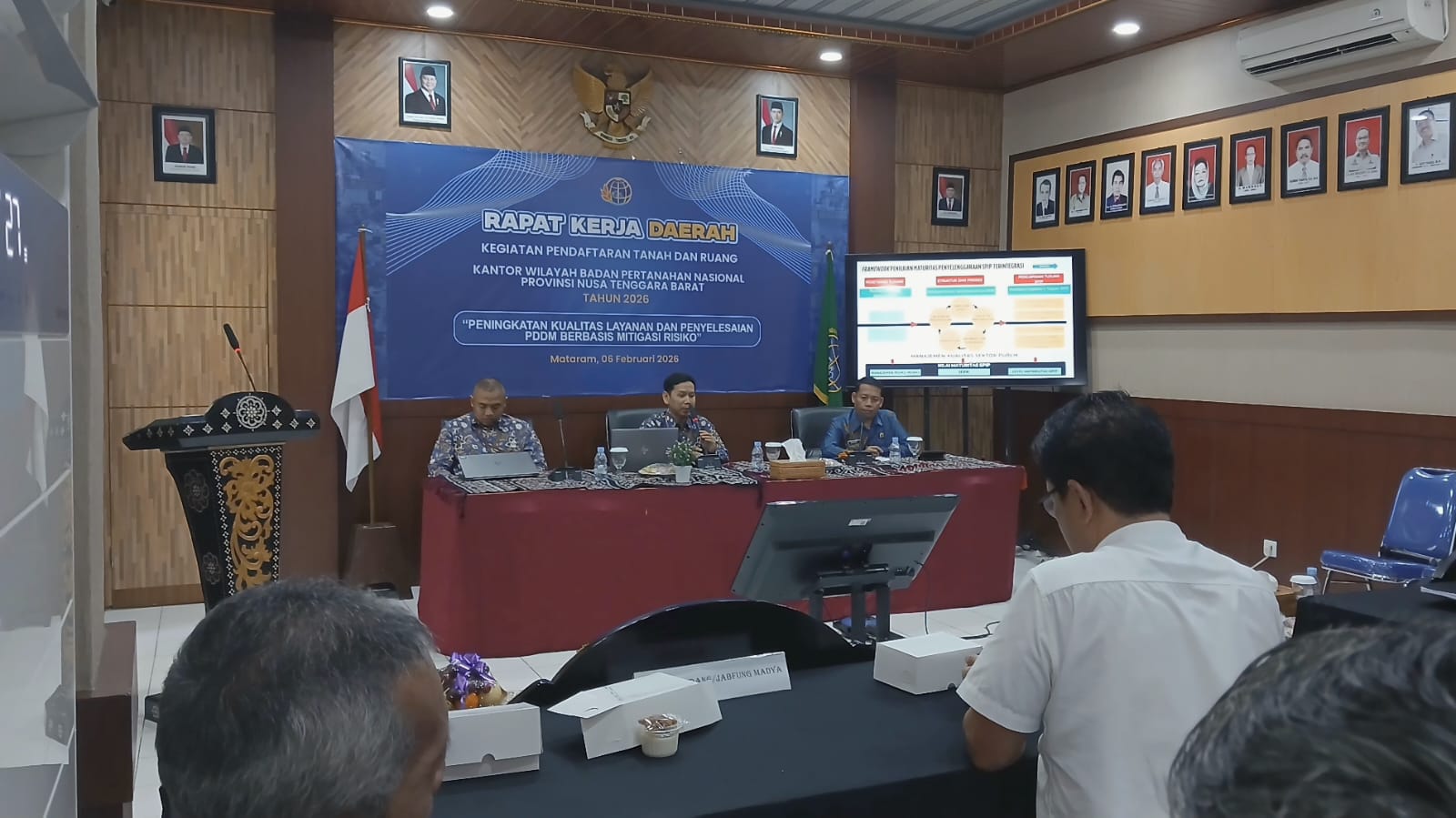 Gatanews.id, Mataram | Kantor Wilayah Badan Pertanahan Nasional (BPN) Provinsi Nusa Tenggara Barat secara resmi menggelar Rapat Kerja Daerah (Rakerda). Mengusung tema “Peningkatan Kualitas Layanan dan Penyelesaian Pendapatan Diterima di Muka (PDDM) Berbasis Mitigasi Risiko”, kegiatan ini berlangsung di Aula Kanwil ATR/BPN NTB pada Jumat (06/02/2026).