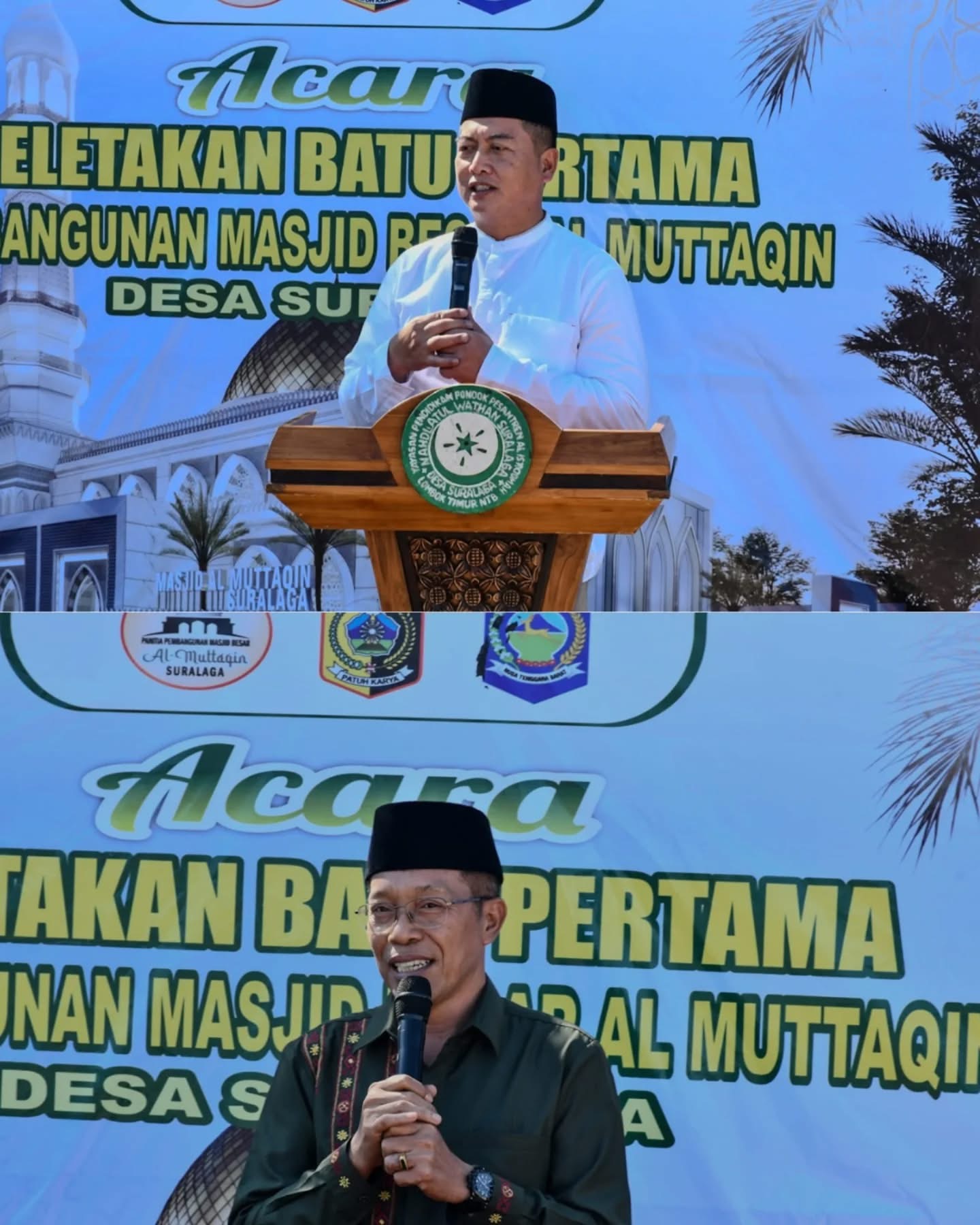 Lombok Timur || Gatanews.id Sekertaris Daerah Kabupaten Lombok Timur(Lotim) H. Muhammad Juaini Taofik menghadiri acara peletakan batu pertama di masjid Al-Muttaqin Suralaga yang dihadiri langsung oleh gubernur Nusa tenggara barat (NTB) berserta jajarannya, Dan dihadiri pula oleh anggota DPRD Lombok Timur, Koramil,camat, kades, tokoh agama dan tokoh masyarakat pada ahad (26/4/2026).